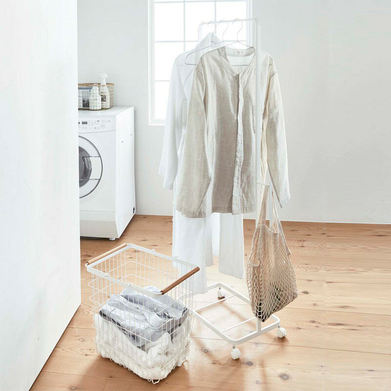 ランドリーハンガーカート セット トスカ tosca ランドリーバスケット付き キャスター ランドリー収納 洗濯物入れ 部屋干し用 北欧 おしゃれ フレンチ カントリー シンプル ホワイト 山崎実業 yamazaki 4377 works