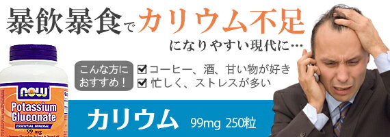 [ お得サイズ ] カリウム99mg 250粒[サプリメント/健康サプリ/サプリ/ミネラル/カリウム/お徳用/now/ナウ/栄養補助/栄養補助食品/アメリカ/国外/タブレット/サプリンクス/通販/楽天]¬