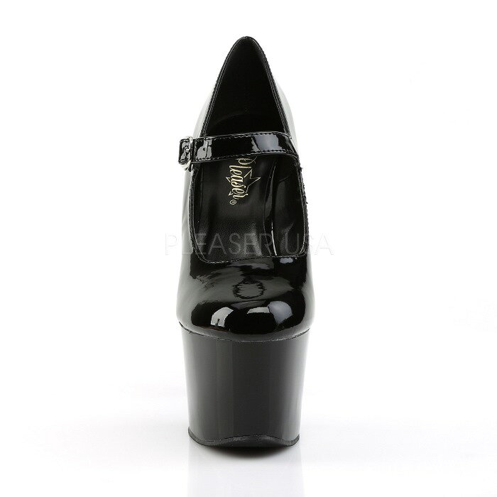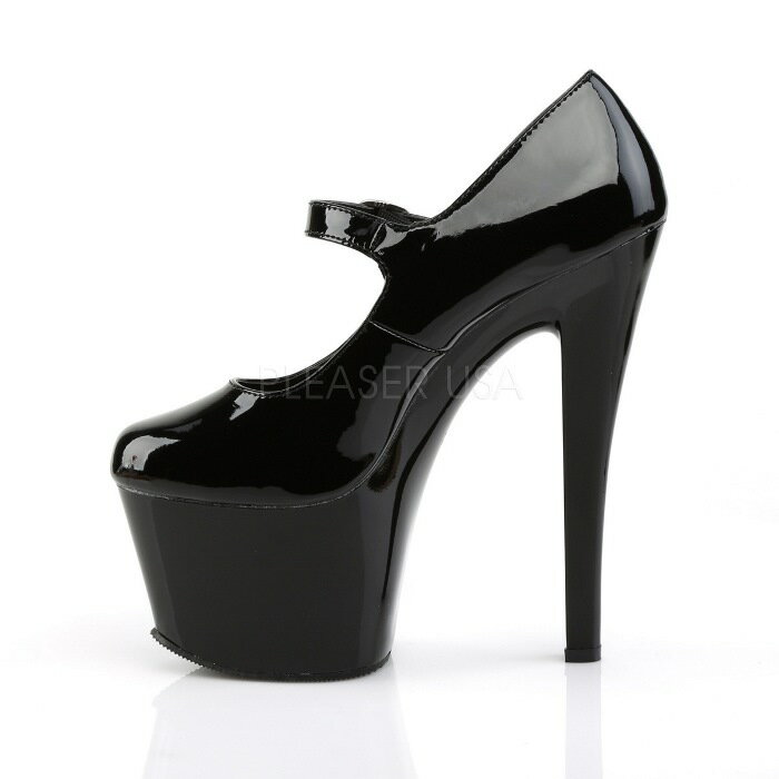 取寄せ靴 送料無料 甲ベルト付き 厚底 パンプス 17.5cm ヒール 黒 ブラック エナメル Pleaser プリーザー 大きいサイズあり イベント 仮装 女装 男装 パーティ- ハロウィン コスプレ