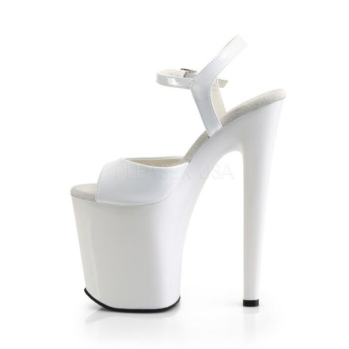 取寄せ靴 送料無料 超厚底サンダル ベルト付 20cmピンヒール 白 ホワイト エナメル Pleaser プリーザー 大きいサイズあり イベント 仮装 女装 男装 パーティ- ハロウィン コスプレ