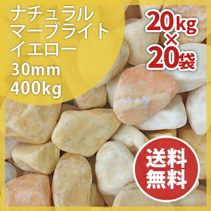【送料無料】ナチュラルマーブライト イエロー30mm 400kg (20kg×20袋) | 庭 お庭 砂利 ジャリ じゃり 玉砂利 玉石 丸 石 小石 庭石 大理石 黄 黄色 クリーム 敷き砂利 ガーデニング ガーデン 園芸 エクステリア 外構 花壇 駐車場 洋風 洋庭 ナチュラル 天然 防犯