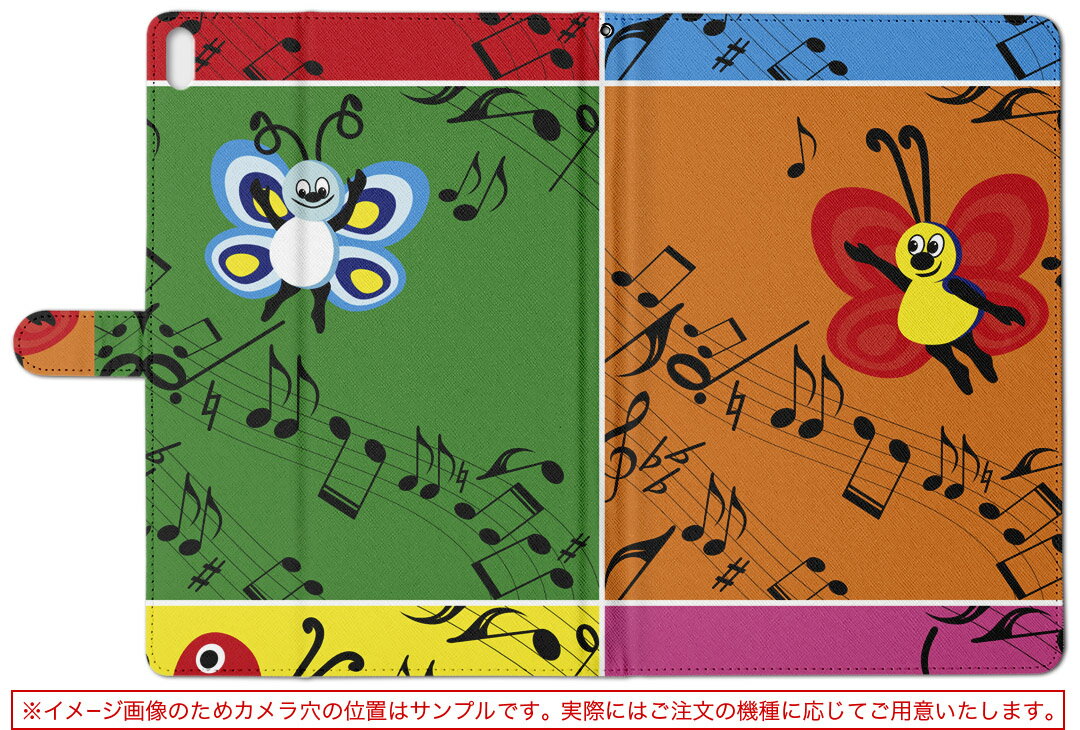 LaVie ラヴィ tabs NEC Sサイズ 手帳型 タブレットケース カバー レザー フリップ ダイアリー 二つ折り 革 ラブリー 音符 蝶 楽譜 005574